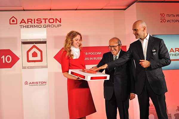 Г‑н Бенчини разделил с гостями радость по случаю 20‑летия работы Ariston на российском рынке и 10‑летия завода в Ленинградской области. Он отметил, что компания издалека увидела перспективы работы на российском рынке, не испугалась трудностей, смотрела в нужном направлении, когда 20 лет назад пришла в Россию со своей продукцией, и заслуживает дальнейшего успешного роста в этой стране.