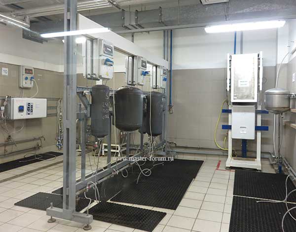 После сварки каждый прибор проходит тест на герметичность, так называемый гидротест. В бак закачивают воздух (давлением 4 атм) и окунают его в воду. Если на воде появляются пузырьки, значит, из бака выходит воздух по причине дефекта сварных соединений. В этом случае продукт поступает в цех ручной доварки, где его осматривают и доваривают. Только после успешного прохождения теста котлы отправляются на следующий участок. На заводе также проводится тест сварных соединений на прочность. Делают его в лаборатории качества, но об этом чуть позже.