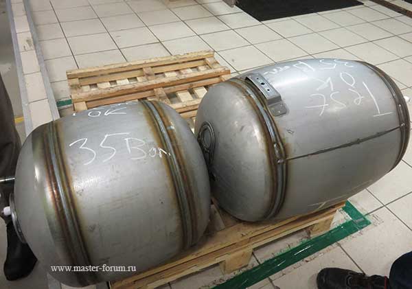 Тест на герметичность — в бак закачивают воздух (под давлением 4 атм) и окунают его в воду