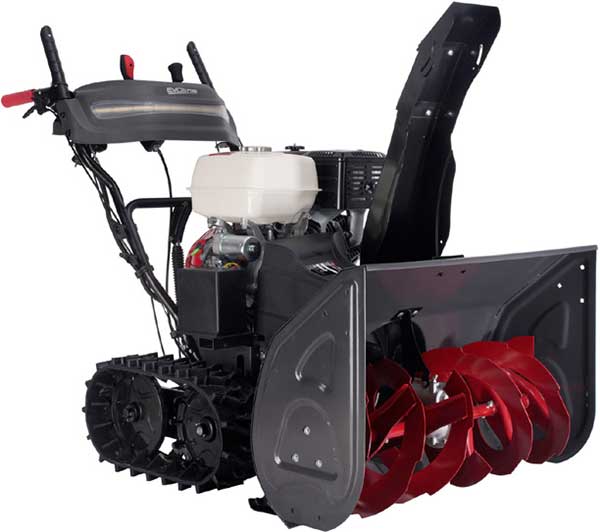 Гусеничные снегоотбрасыватели – наиболее мощные и «продвинутые» машины в линейках у всех производителей. Такие модели предназначаются для сложных условий использования – на склонах, участках и дорогах с большими перепадами высот. Ледяная корка под слоем снега – явление нередкое, особенно часто встречающееся в районе подъездов к загородным участкам или на подъёмах дорог и тротуаров. Пневматические колёса обычных снегоотбрасывателей в таких условиях не всегда способны обеспечить уверенное сцепление с дорогой – и такие машины начинают буксовать.