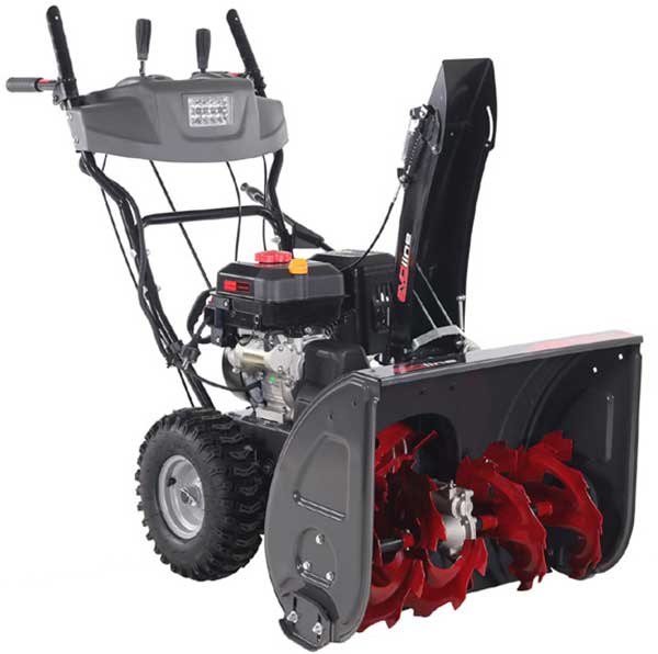 Снегоотбрасыватели EVOline Premium отличаются от моделей серии Standard и по множеству других особенностей. На «снежники» для лучшей проходимости всегда ставят колёса «для зимы» – покрышки с «тракторным» рисунком протектора, резина которых остаётся мягкой при отрицательных температурах. Машины «премиальной» линейки комплектуются колёсами увеличенного диаметра и ширины – то есть, их проходимость ещё выше.