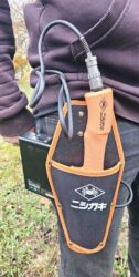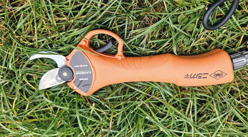 CN‑929 с его тонкой эргономичной рукояткой ощущается продолжением руки – разница очень явно выраженная и очень значительная. И это только за счет формы, а ведь есть ещё и весьма серьезная разница в весе. Для постоянной интенсивной работы этот секатор, безусловно, подходит наилучшим образом. Батарею можно повесить на пояс или карман, для этого она оснащена специальной металлической клипсой. А для самого секатора в комплекте предусмотрена жёсткая кобура, которую также можно повесить на пояс, освободив обе руки.