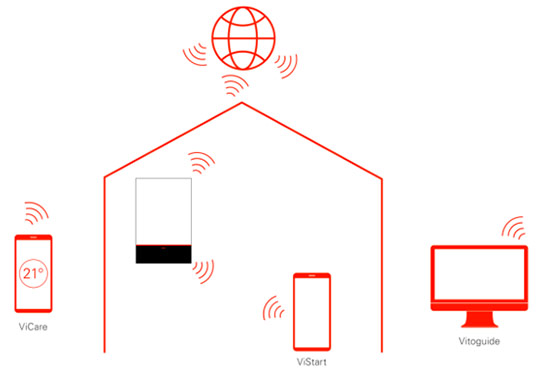 Помимо панели управления, новый Vitodens запускается в работу в том числе с помощью усовершенствованного электронного ассистента, который пошагово показывает последовательность действий. В отличие от предыдущего поколения, можно использовать приложение ViStart на смартфоне или планшете.